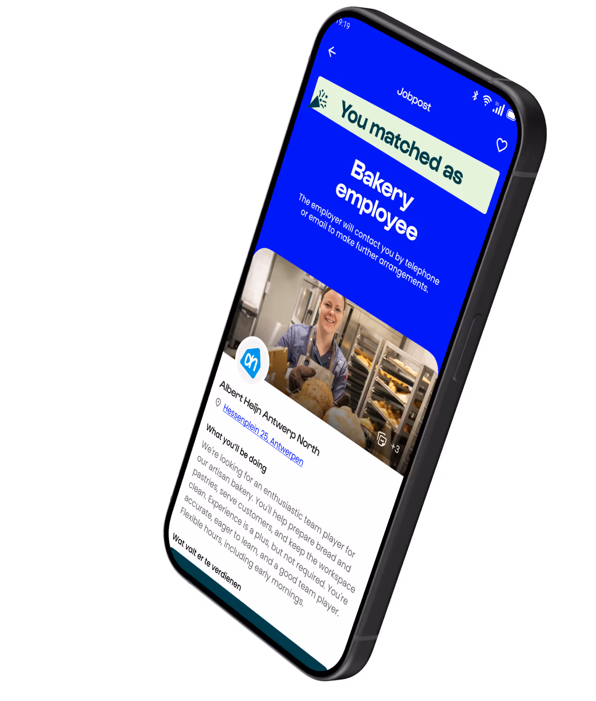 Heel eenvoudig: via het Job Poster-portaal of rechtstreeks in de app. Maak een bedrijfsprofiel aan, beschrijf je job via een eenvoudige wizard ondersteund door onze AI, voeg visuele elementen toe en publiceer het. Ons algoritme doet de rest en brengt je vacature bij passende kandidaten.