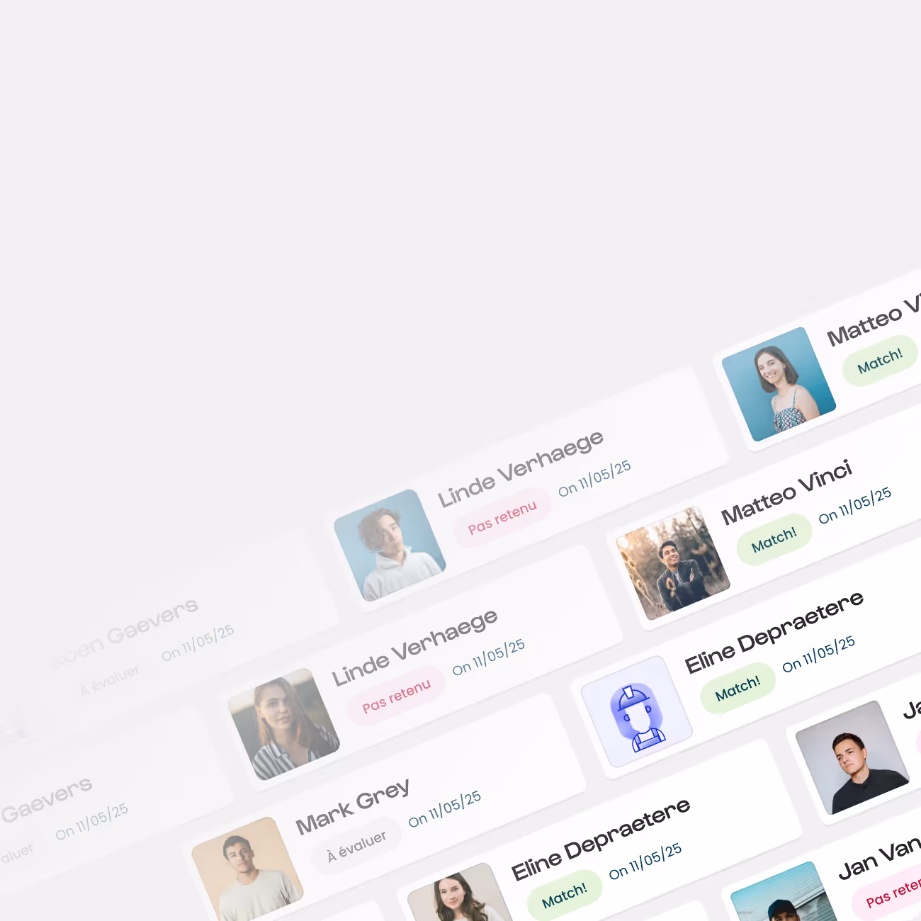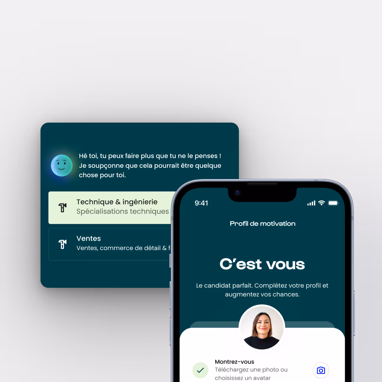Très simplement : via le portail recruteurs ou directement dans l’application. Créez un profil d'entreprise, décrivez votre poste via un assistant simple soutenu par notre IA, ajoutez des visuels et publiez-le. Notre algorithme s'occupe du reste en diffusant votre offre auprès des candidats correspondants.